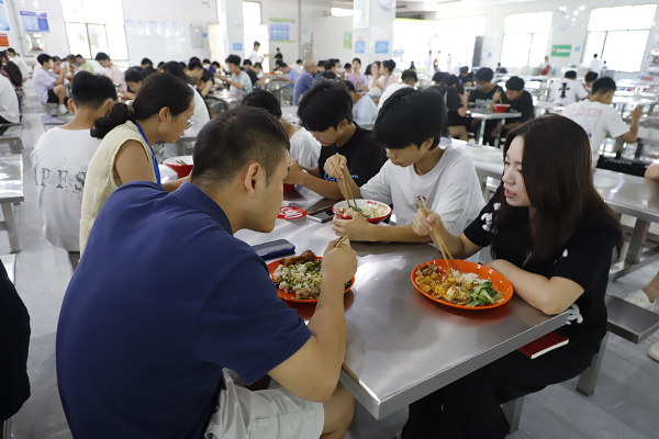 食堂里飯菜飄香、笑語盈盈。“口味還習(xí)慣嗎?”“分量夠不夠?”黨員們與各族學(xué)生同桌用餐、親切交流,原本普通的午餐時光,秒變收集意見、解決實際問題的“服務(wù)驛站”。餐桌上的氤氳熱氣,升騰起師生間的濃濃暖意。