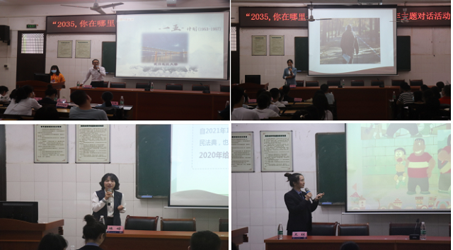 在宣講活動中,市委黨校法律教研室主任陳婷、衡陽縣檢察院團委書記王瓊、衡陽師范學院馬克思主義專任教師翟光艷、衡陽市八中語文老師唐玉瑞四位青年講師分別以《學習民法典、做新時代好青年》、《對校園暴力說“不”》《人民就是江山、江山就是人們》《五年計劃之最》為主題,用生動活潑、通俗易懂的方式宣講,點燃了同學們的熱情和學習興趣。同學們回顧了中國共產黨發展歷程中的動人時刻以及“十三五”期間我國取得的矚目成就,表達了對“十四五”及對2035年美好生活的新期盼,學習了與青少年息息相關的民法典與青少年如何保護自己的法律知識,激發了為祖國的未來而奮斗的理想信念,樹立了正確的法制觀念和積極健康向上的心態。