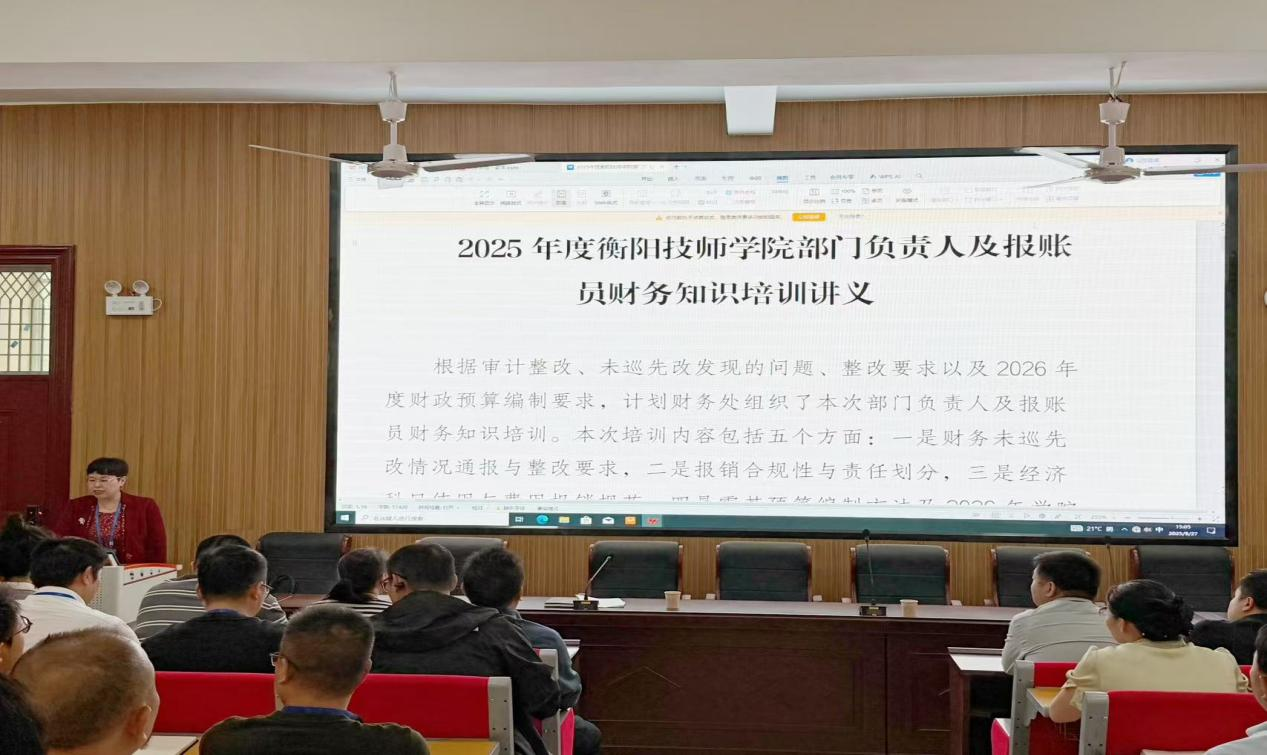 為深入貫徹落實審計整改及“未巡先改”工作要求,進一步提升各部門財務管理與內控意識,規范財經行為,保障學院各項事業健康發展,學院計劃財務處聯合黨政辦公室于2025年9月27日下午,在第一教學樓東頭多媒體教室組織召開了2025年度衡陽技師學院財務知識講座暨內部控制交流會。學院各部門負責人、報賬員及招生片區負責人參加了本次會議。