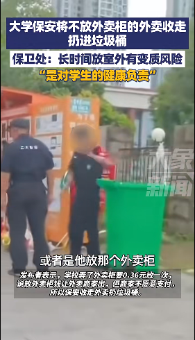 9月17日,我們關注到我校保安將未放柜外賣扔垃圾桶相關事件,對于保安人員在管理過程中的簡單、粗暴行為給學生造成了損失,我們表示深深的歉意。學校立即啟動對受損學生外賣補償的工作。下一步,學校將逐級調查核實,對相關部門及工作人員進行追責處理。