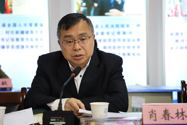 肖春林強調,一要把主題教育謀劃好、組織好、落實好。把開展主題教育作為貫徹落實黨的二十大精神的重大舉措,牢牢把握“學思想、強黨性、重實踐、建新功”的總要求,努力在以學鑄魂、以學增智、以學正風、以學促干方面取得實實在在的成效,著力增強推動高質量發展本領、服務師生本領和增強防范化解風險本領,真正把學到的方法、知識運用到解決師生急難愁盼問題、辦好民生實事上。二要深入實際、深入師生,帶頭抓好調查研究。班子成員和各部門、二級學院負責人要緊扣學院中心工作、決策需要、師生期盼,多到分管領域去調研,真正把調查研究成果轉化為推動學院發展、推進工作的實際成效。三要統籌學習、提升能力,完整準確全面貫徹總體國家安全觀。要用總體國家安全觀的思維武裝頭腦,增強國家安全意識和素養,增強保密意識。加強宣傳教育,把總體國家安全觀的理念、方法和要求轉化到教書育人之中,引導學生牢固樹立國家安全意識,著力推動大安全理念深入人心、落地生根。