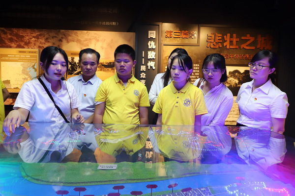 在衡陽抗戰紀念館,師生們認真聆聽講解員講解革命歷史。一幅幅歷史照片、一幕幕革命場景,通過“戰略之火、大義之城、悲壯之城、英雄之城”四個板塊,展現了中華兒女強烈的愛國精神和不屈不撓的民族精神,強烈震撼了每一個人的內心,讓師生們深刻銘記這熱血交融的歷史。