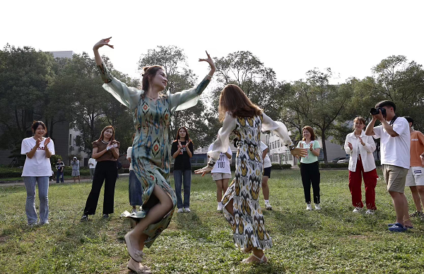 新疆培訓學員在衡陽技師學院校園內載歌載舞