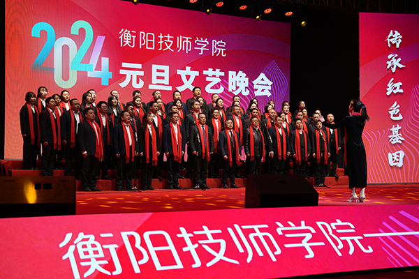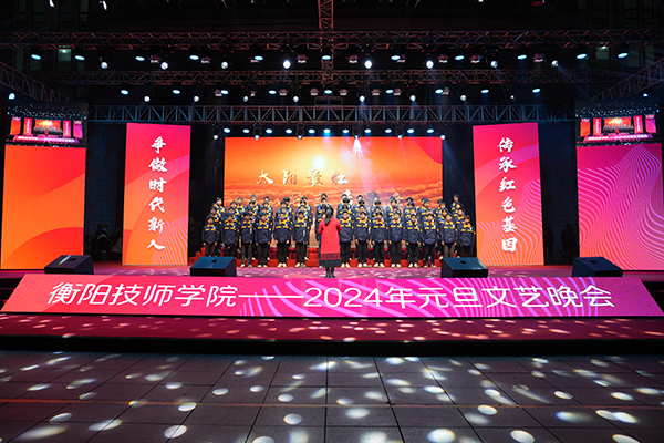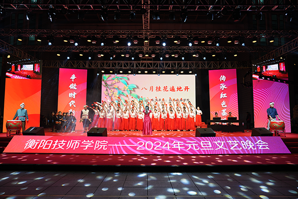 “東方紅,太陽升,中國出了個毛澤東……”氣勢磅礴的開場鼓舞《東方紅》拉開了晚會序幕。12月26日晚,衡陽技師學(xué)院舉辦2024年元旦文藝晚會。學(xué)院領(lǐng)導(dǎo)、全體師生齊聚一堂,共慶元旦。5.75萬網(wǎng)友通過線上直播觀看晚會。