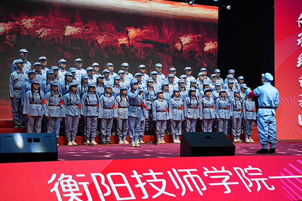 晚會通過大合唱、詩詞朗誦、微宣講等形式,再現(xiàn)了波瀾壯闊的紅色故事。《八月桂花遍地開》唱出了皖西革命老區(qū)人民的紅色傳承,讓紅色文化在新時代煥發(fā)新的光彩。《太陽最紅 毛主席最親》唱出了人民對新中國的締造者毛澤東同志的深情厚意。《北京的金山上》《四渡赤水》《唱支山歌給黨聽》《瀏陽河》《沒有共產(chǎn)黨就沒有新中國》等大合唱,師生用激情的歌聲贊美黨,用自己的一切來感恩黨。